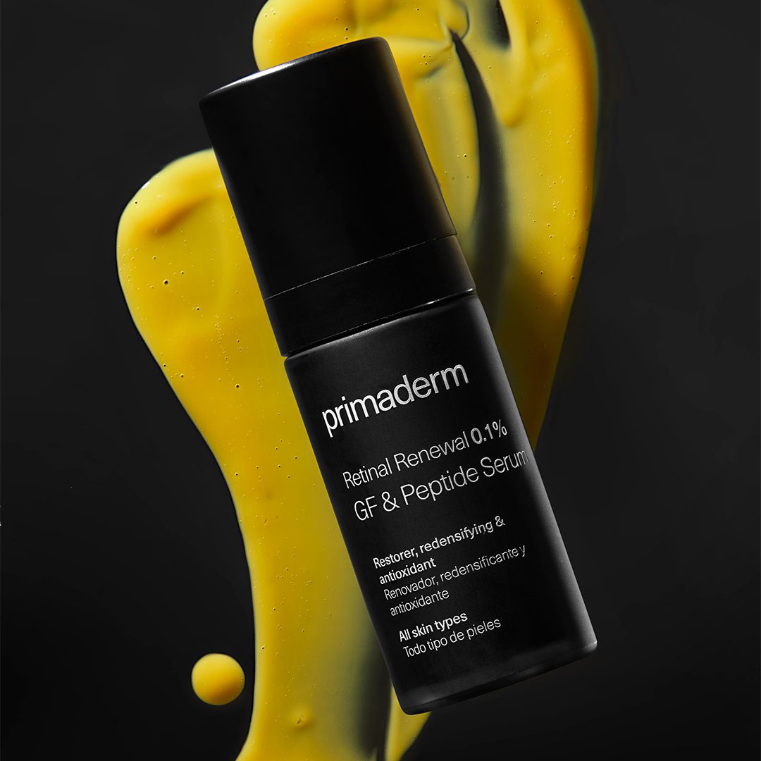 Un tratamiento de nueva generación que actúa sobre flacidez, arrugas, manchas e irregularidades de la piel, formulado con una concentración del 0,1% de Retinal puro encapsulado para garantizar eficacia y tolerancia incluso en pieles que se inician en este activo.